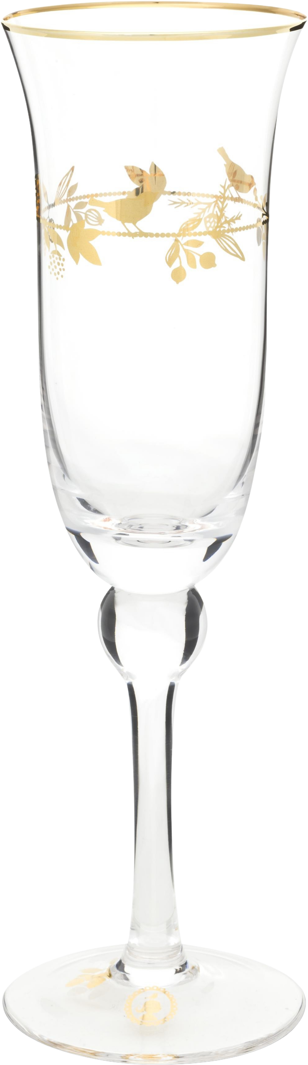 Naj vaša penina zasije v stilu s temi čudovitimi kozarci za penino iz Pip Studia! Izdelani iz prozornega, visokokakovostnega stekla in okrašeni z nežnim zlatim vzorcem ptic, cvetov in listov, zato bodo zagotovo navdušili vaše goste! Nežen zlat rob doda pridih razkošja. Zaradi elegantne krivulje in osrednjega dela v obliki bisera je kozarec prava paša za oči. Ponaša se tudi z veliko prostornino 250 ml.