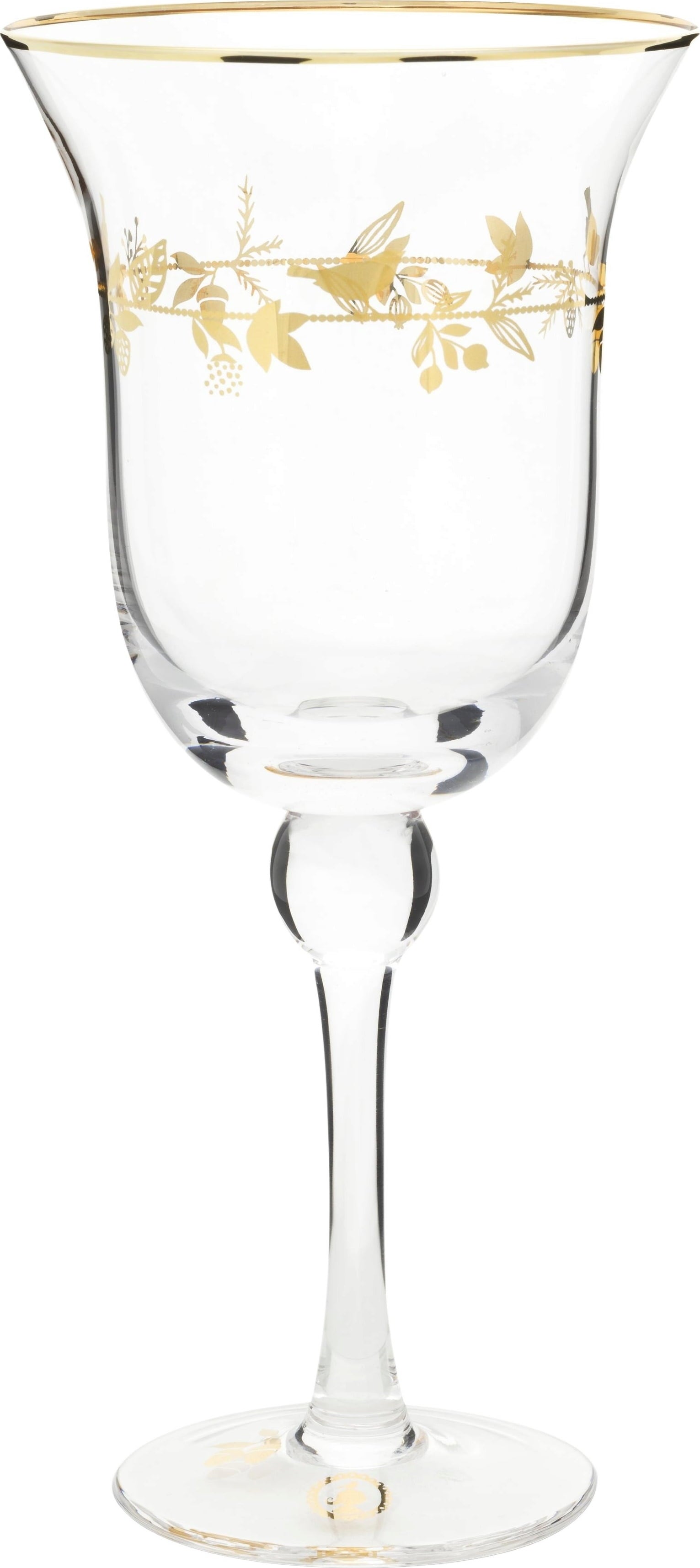 Naj vaše pijače zasijejo v stilu s tem čudovitim vinskim kozarcem znamke Pip Studio ! Izdelan je iz prozornega, visokokakovostnega stekla in okrašen z nežnim, zlatim vzorcem ptic, cvetov in listov, zato bo zagotovo navdušil vaše goste! Nežen, zlat rob doda pridih razkošja. Graciozen pecelj z bisernim robom naredi kozarec resnično čudovit. Ponaša se tudi z veliko prostornino 390 ml.