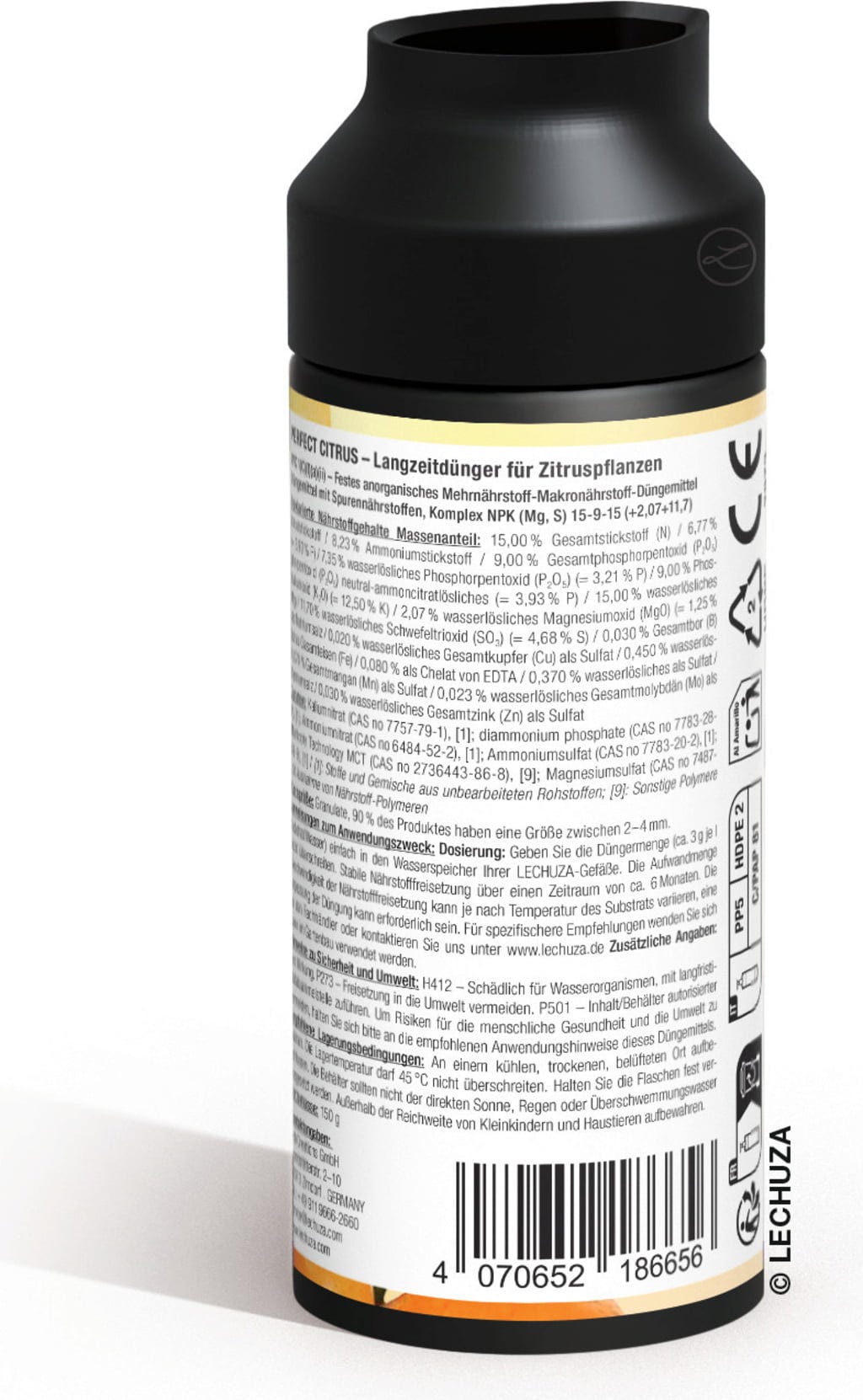 Zakaj bi stvari komplicirali, če so lahko preproste? Z gnojilom s počasnim sproščanjem Perfect Citrus lahko za svoje citruse skrbite na profesionalni ravni, brez potrebe po nenehnem gnojenju. Inteligentno sproščanje hranil je popolnoma prilagojeno potrebam tudi najzahtevnejših sort. Dodaten odmerek železa zagotavlja bogato zeleno listje in vitalen videz.