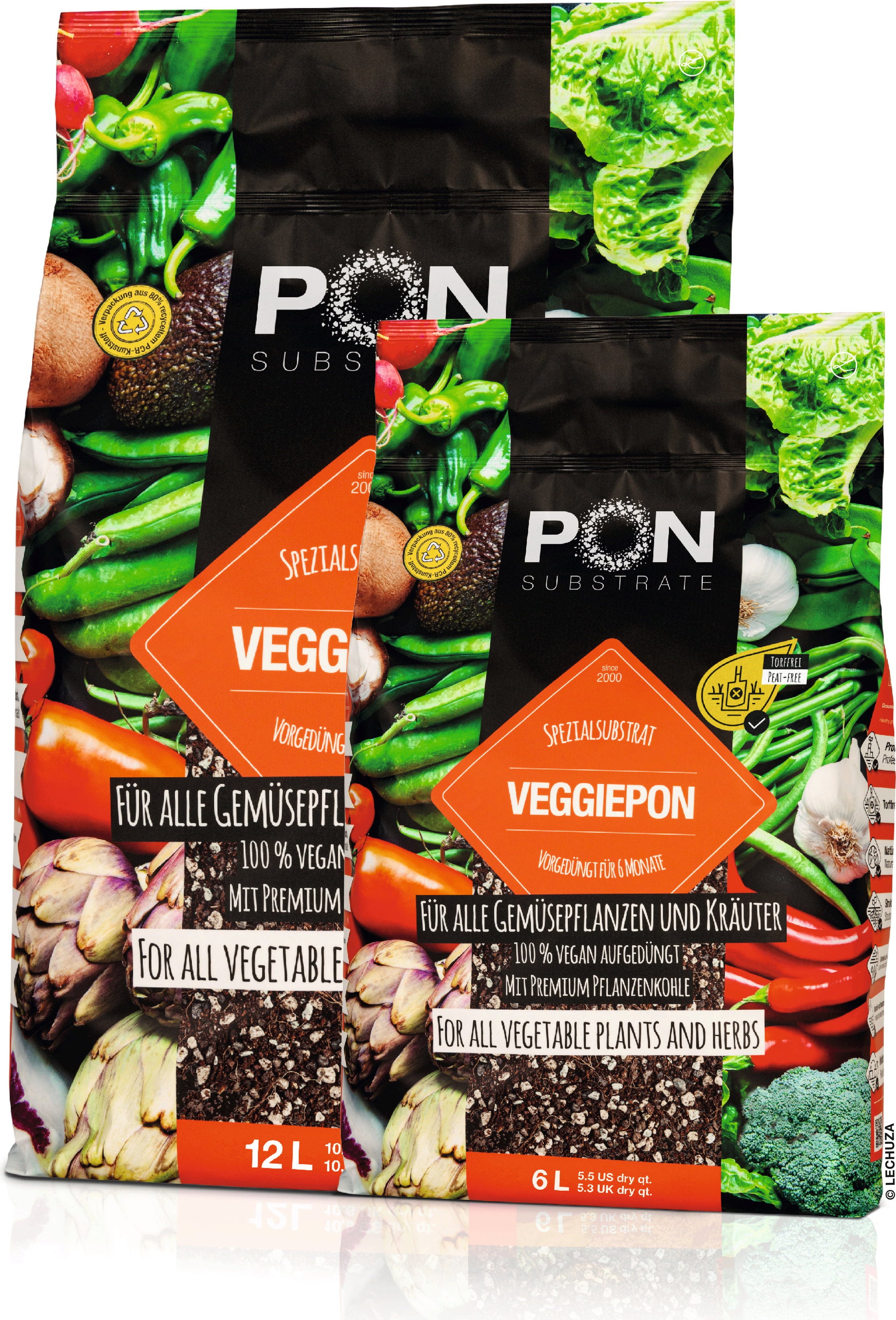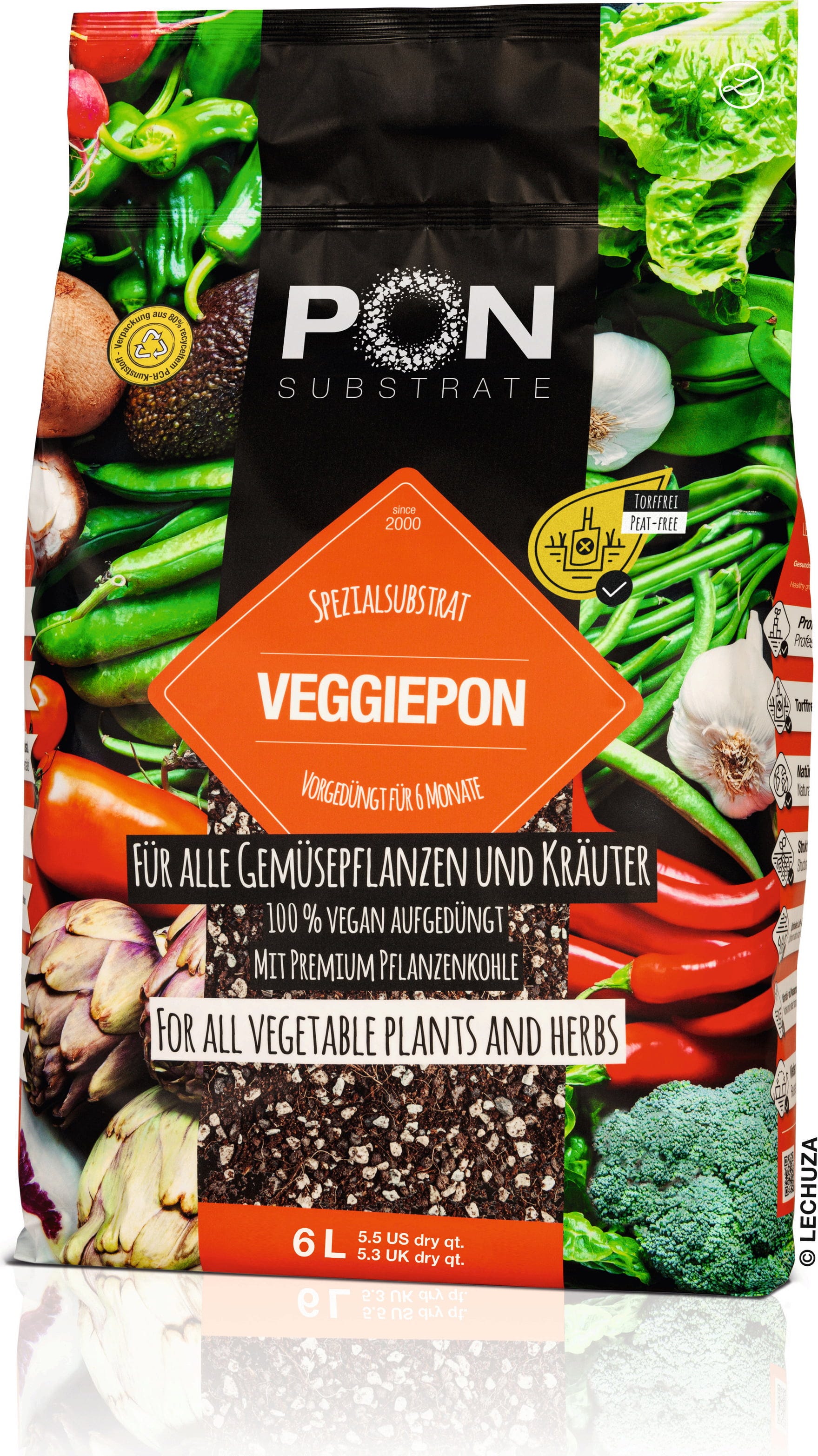 Veggiepon združuje funkcionalnost z ekološkimi standardi. Organsko-mineralni substrat zagotavlja odlično drenažo in preprečuje gnitje korenin, tudi če poleti močno dežuje. Zaradi veganskega gnojila s počasnim sproščanjem, ki je že vključeno, je za vaše rastline dobro poskrbljeno že od samega začetka.