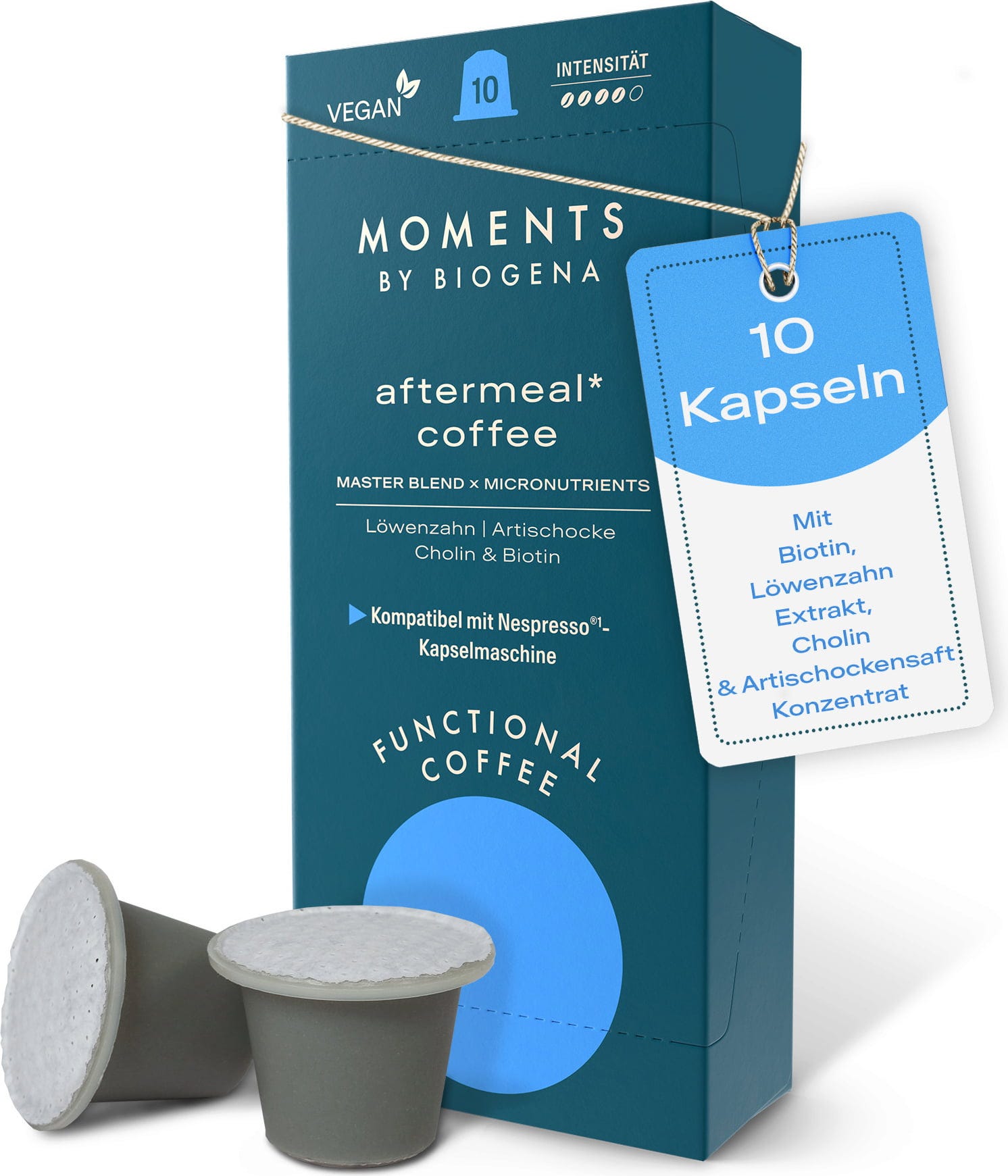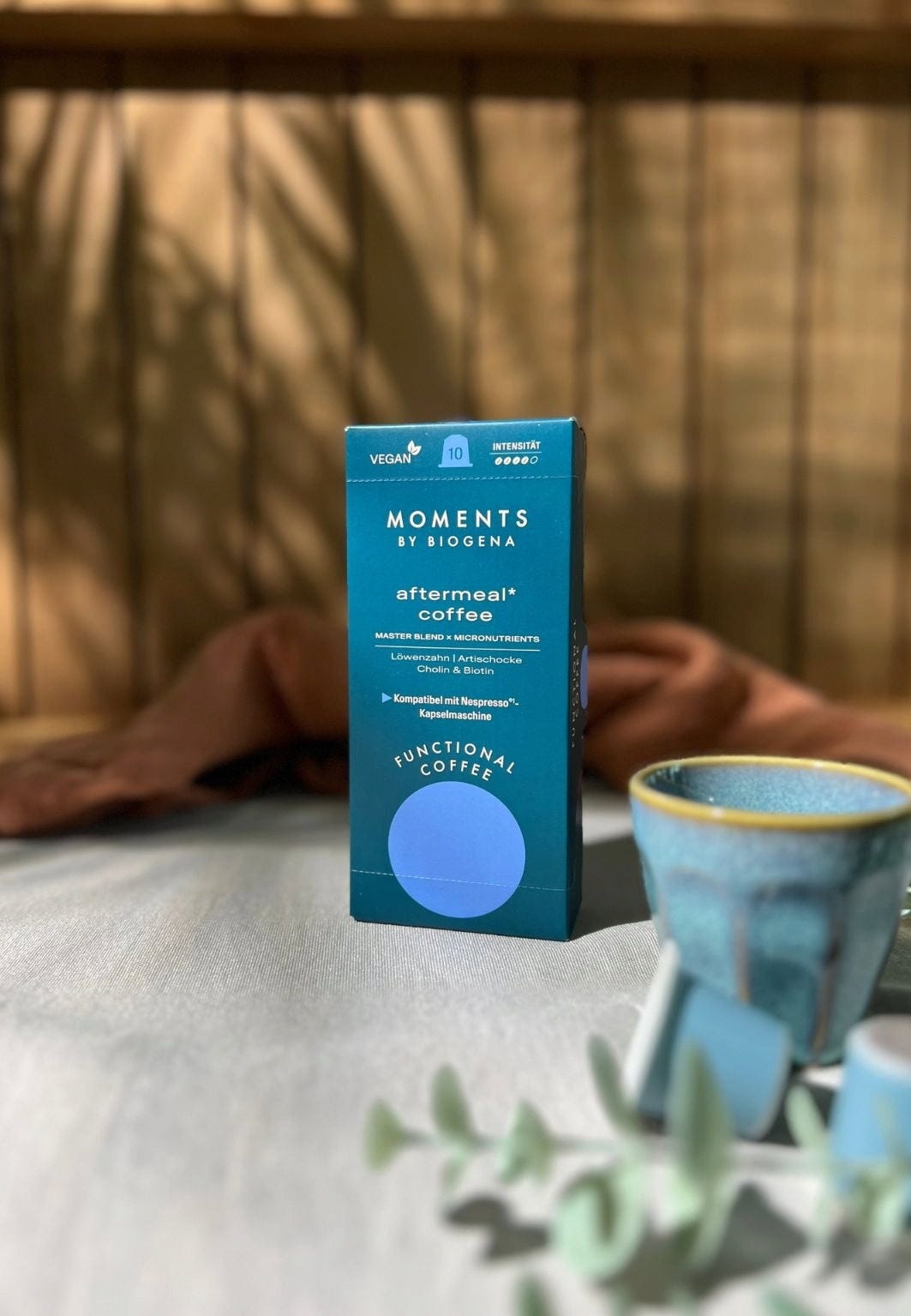 aftermeal coffee* z regratom, artičoko, holinom in biotinom prinaša svežino v vsakodnevno uživanje kave. Edinstven okus združuje skrbno razvito recepturo s praktično in enostavno uporabo.