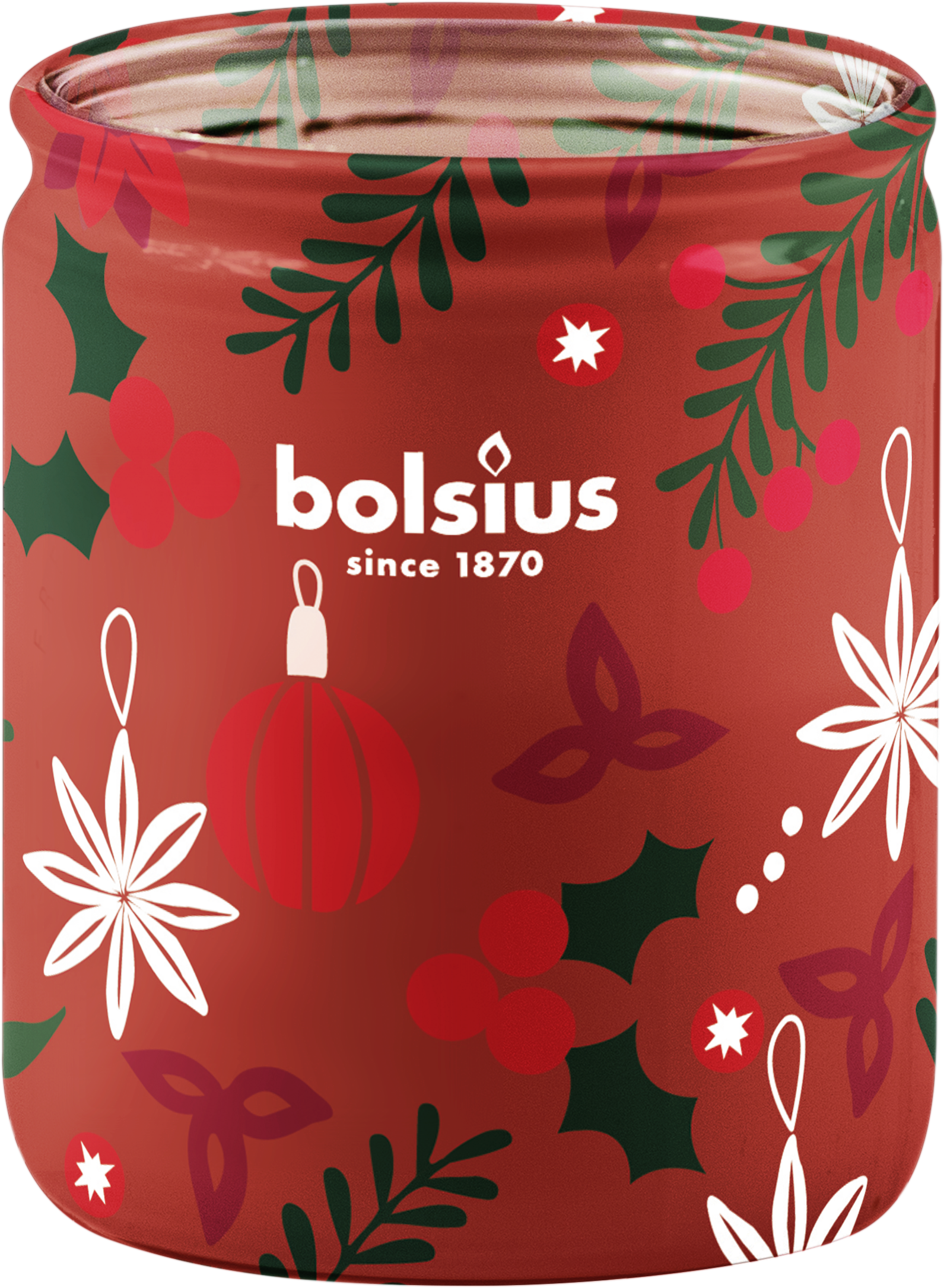 bolsius Dišeča sveča True Glow v kozarcu s tulcem, Merry Moments