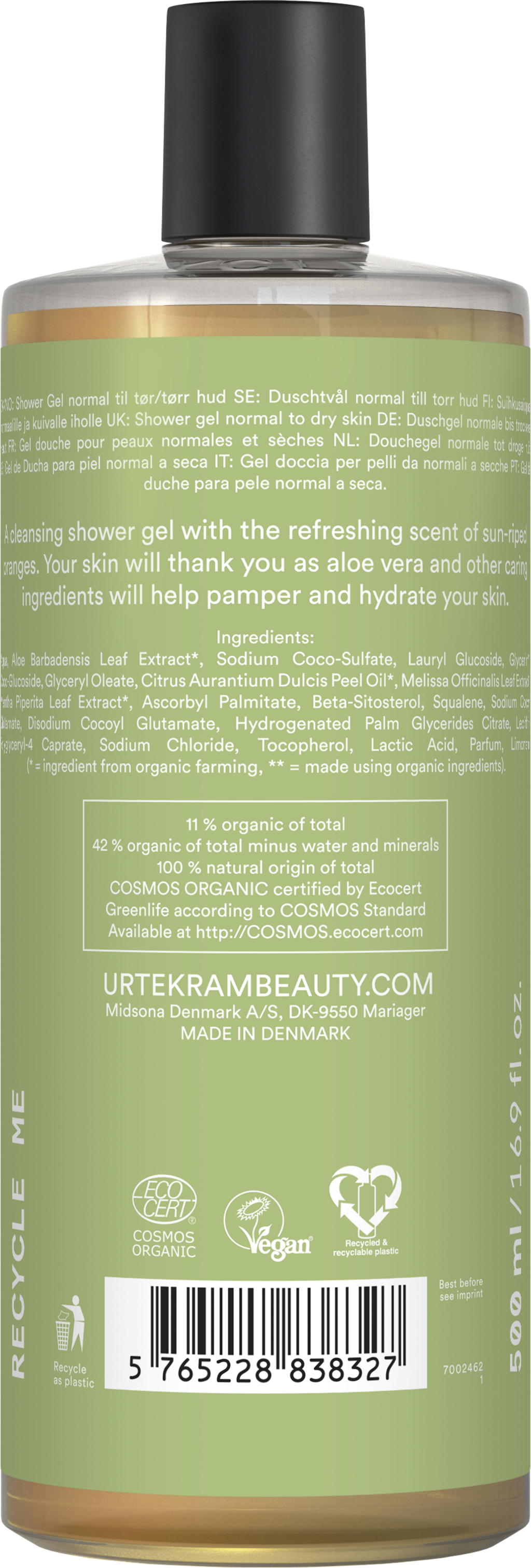 Zrele pomaranče podarijo gelu, pridih svežine, medtem ko izjemno visoka vsebnost aloe vere omogoča mehke mehurčke, ki so polni vlažilne nege za vašo kožo.