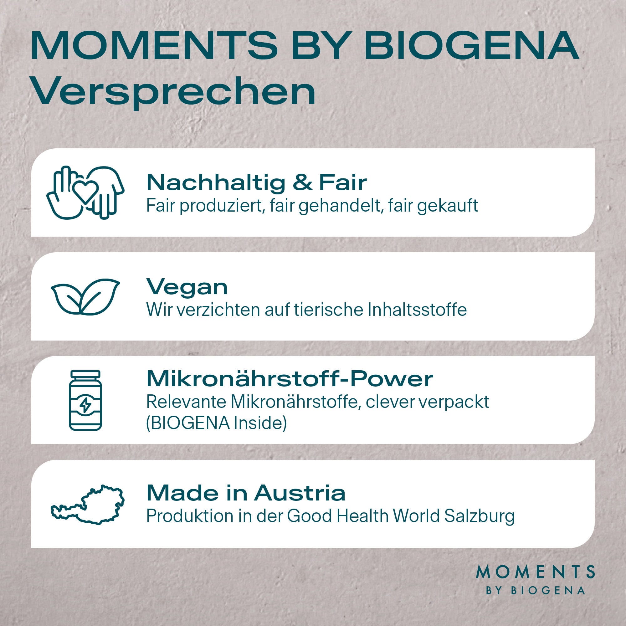 Vsaka kapsula vsebuje skrbno usklajene sestavine, ki zahvaljujoč BIOGENA INSIDE zagotavljajo stalno visoko kakovost in stabilnost.