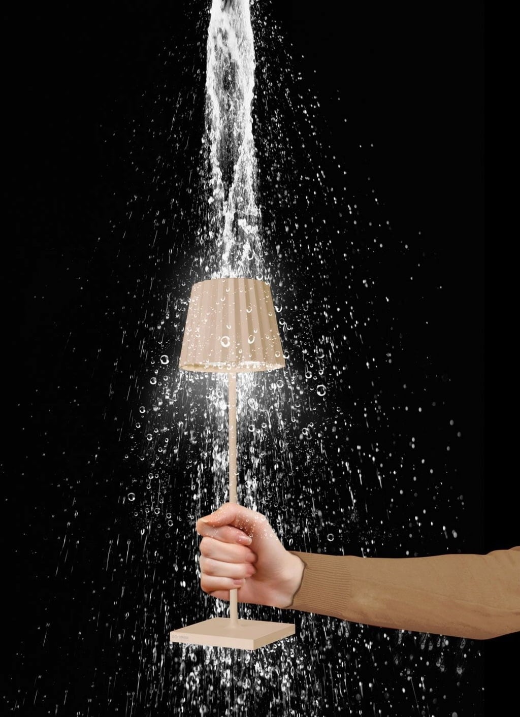 Svetilka ima klasičen dizajn, ki spominja na značilen naguban senčnik, je eleganten dodatek za dnevne sobe, terase in balkone ter jo je mogoče kadarkoli napolniti na polnilni bazi.