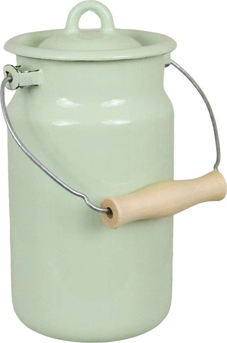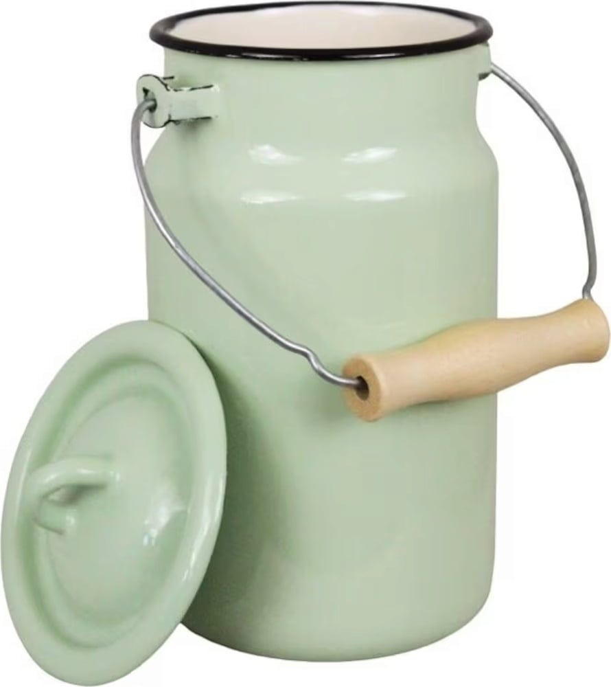 Ta emajliran lonec v kul retro dizajnu prinese edinstven slog v vaš dom. Ni samo idealen kot vrč za mleko in druge pijače, ampak se lahko uporablja tudi kot elegantna shramba za kuhinjske pripomočke in kot pomočnik pri žetvi. Odlično se poda tudi kot vaza za vaše najljubše rože in daje prav poseben poudarek vsaki mizi.