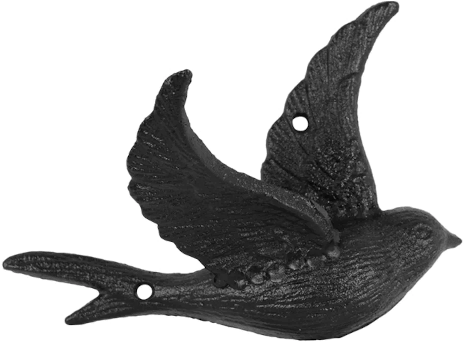 Ta majhna ptičica iz litega železa drži eno od svojih kril ravno prav, da lahko obesite vence, jakne ali torbe. Posebej očarljiv dodatek, ki šele na prvi pogled razkrije svojo praktično uporabo.