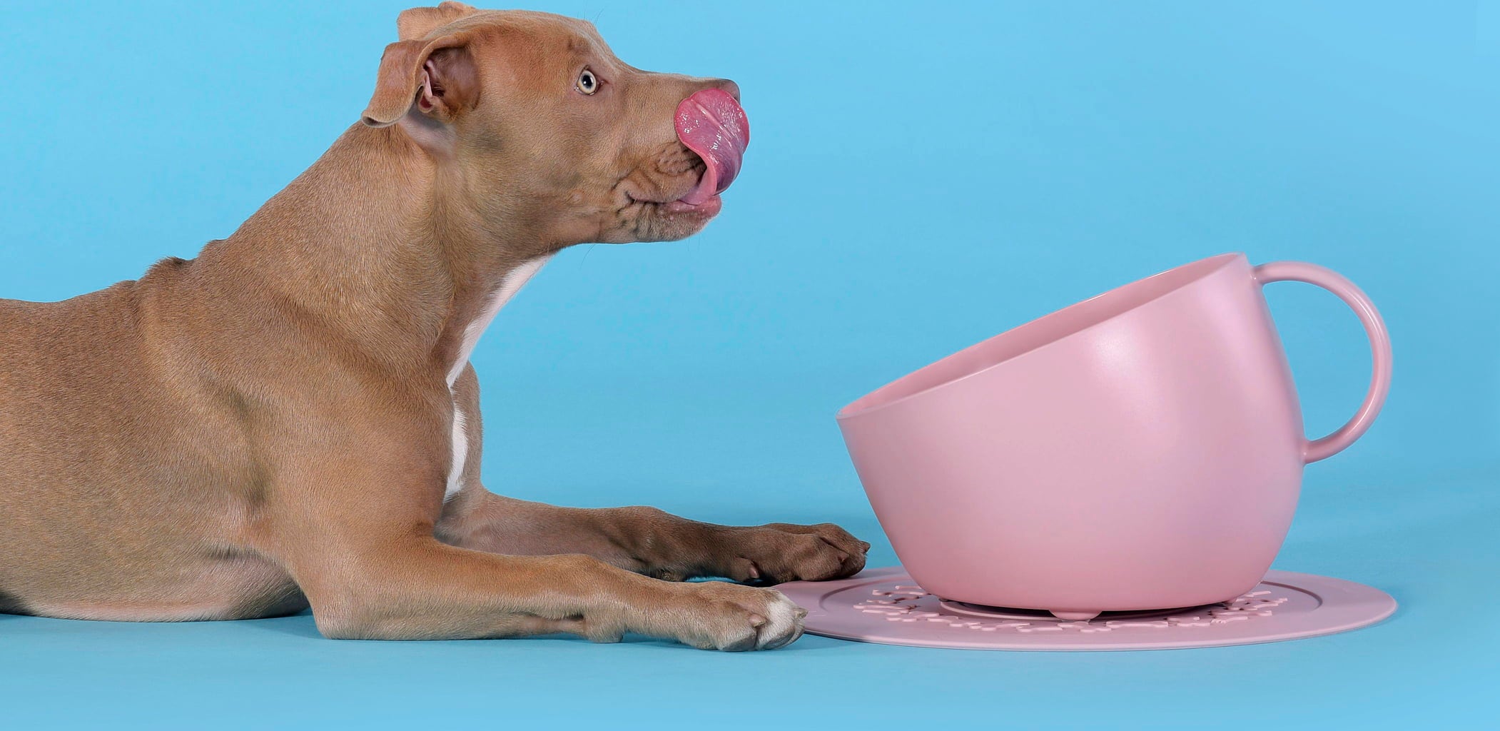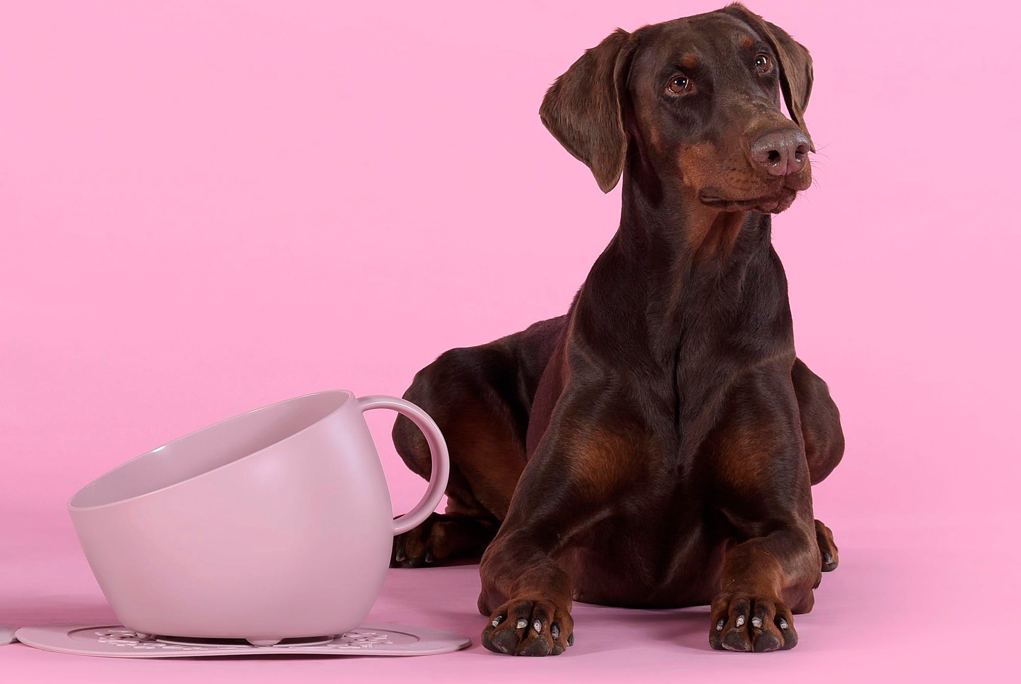Dober tek! Posoda za pse CUP ima nedrseče gumijaste noge in posebno visok rob, tako da vaš požrešni sladkosned dela manj nereda. Če gre kaj narobe, barvno usklajena podloga prepreči, da bi se zgodilo kaj hujšega.