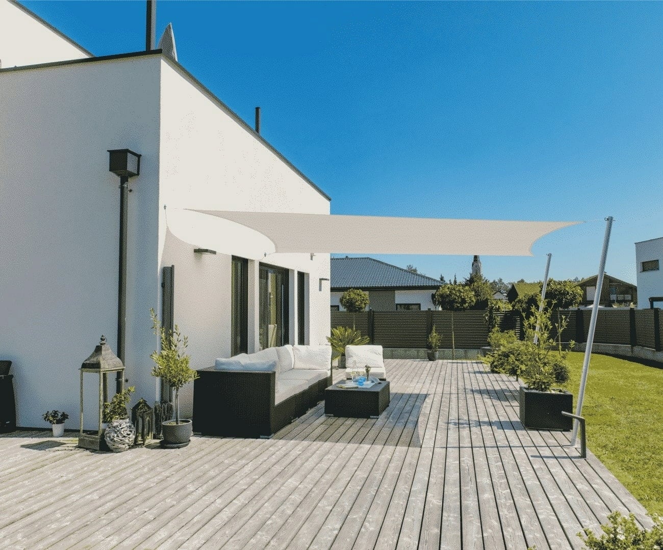 Idealen ponudnik sence poleti. Pravokotno sončno jadro SunSail CANNES je hitro in enostavno pritrditi in ga lahko kadar koli znova odstranite, če se odločite za drugo barvo ali jo želite pospraviti, da pozimi prihranite prostor.