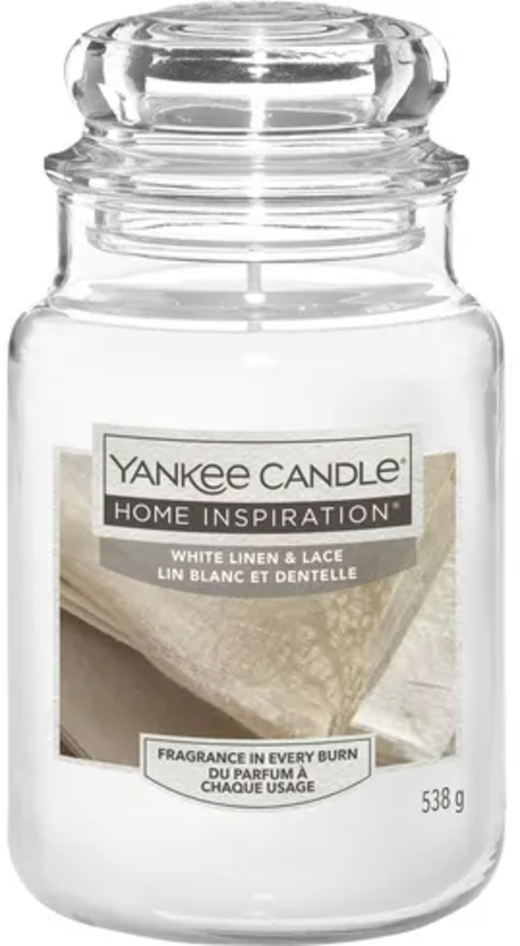 Yankee Candle Home Inspiration sveča v kozarcu White Linen & Lace, Large (538 g)